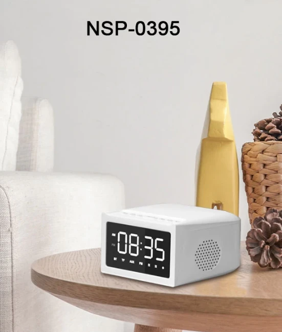 中国时钟蓝牙无线充电音箱 这款扬声器采用耐用的 ABS 塑料制成,平衡了时尚美观与持久性能,非常适合家庭、办公室或旅途中使用。是什么真正让它与众不同?其无与伦比的功能可满足各种音频和充电需求:通过蓝牙 V5.3(连接范围为 10M)无缝传输音乐,以 15W 快速充电速度无线为智能手机供电,使用内置时钟记录时间,并享受多种播放选项,包括 TF 卡、USB、AUX 和 FM 收音机。无论您的客户想要收听他们最喜爱的播放列表、无需电源线为设备充电,还是收听本地电台,这款扬声器都能满足您的需求 - 无需额外的小工具。