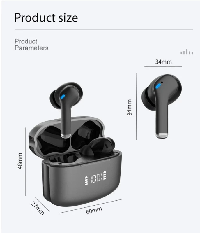 这些耳机采用高品质 ABS 塑料PC 制成,坚固耐用,外形时尚,确保持久使用和舒适的佩戴体验。小巧的充电盒(60.32*26.9*47.94mm)易于携带,使耳机成为日常通勤、游戏和户外活动的完美伴侣。除了耐用的结构之外,它们还具有专业的音频功能,使其有别于市场上的普通耳机。![]()