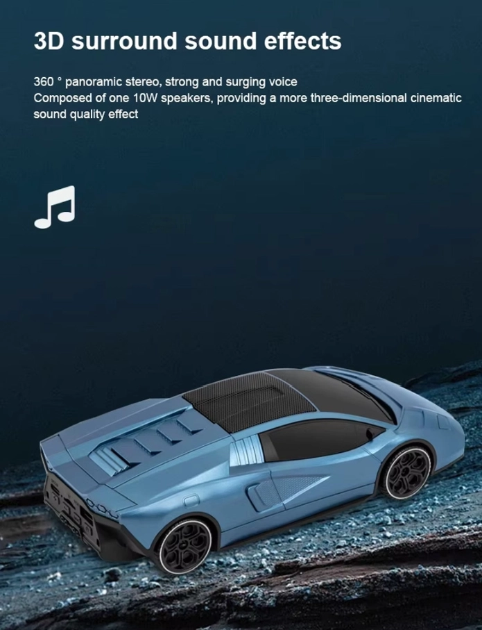 The most distinctive feature of this wireless speaker is its car-shaped mould design. Unlike traditional portable speakers that often look similar, this product offers a creative and visually appealing appearance inspired by modern automotive styling.