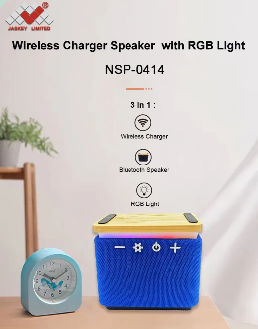 Wireless Charger Speaker with RGB Light-For retailers catering to tech-savvy homeowners, students, professionals, and gift shoppers, the demand for multi-functional gadgets that blend style, convenience, and performance is at an all-time high. Bulky chargers, separate speakers, and generic lamps clutter desks and nightstands, while uninspired designs fail to elevate modern interiors. Our China-Made Wireless Charger Speaker with RGB Light solves these pain points by integrating a 10W wireless charger, 5W Bluetooth speaker, and customizable RGB light into one sleek device—crafting a 3-in-1 solution that enhances daily life, workspace productivity, and home ambiance.