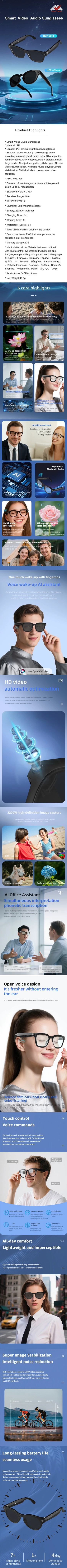 Crafted from durable TR material, these Smart Video Audio Sunglasses blend style with all-around functionality. They come with PC anti-blue light lenses and sunglasses options, suiting different daily needs.