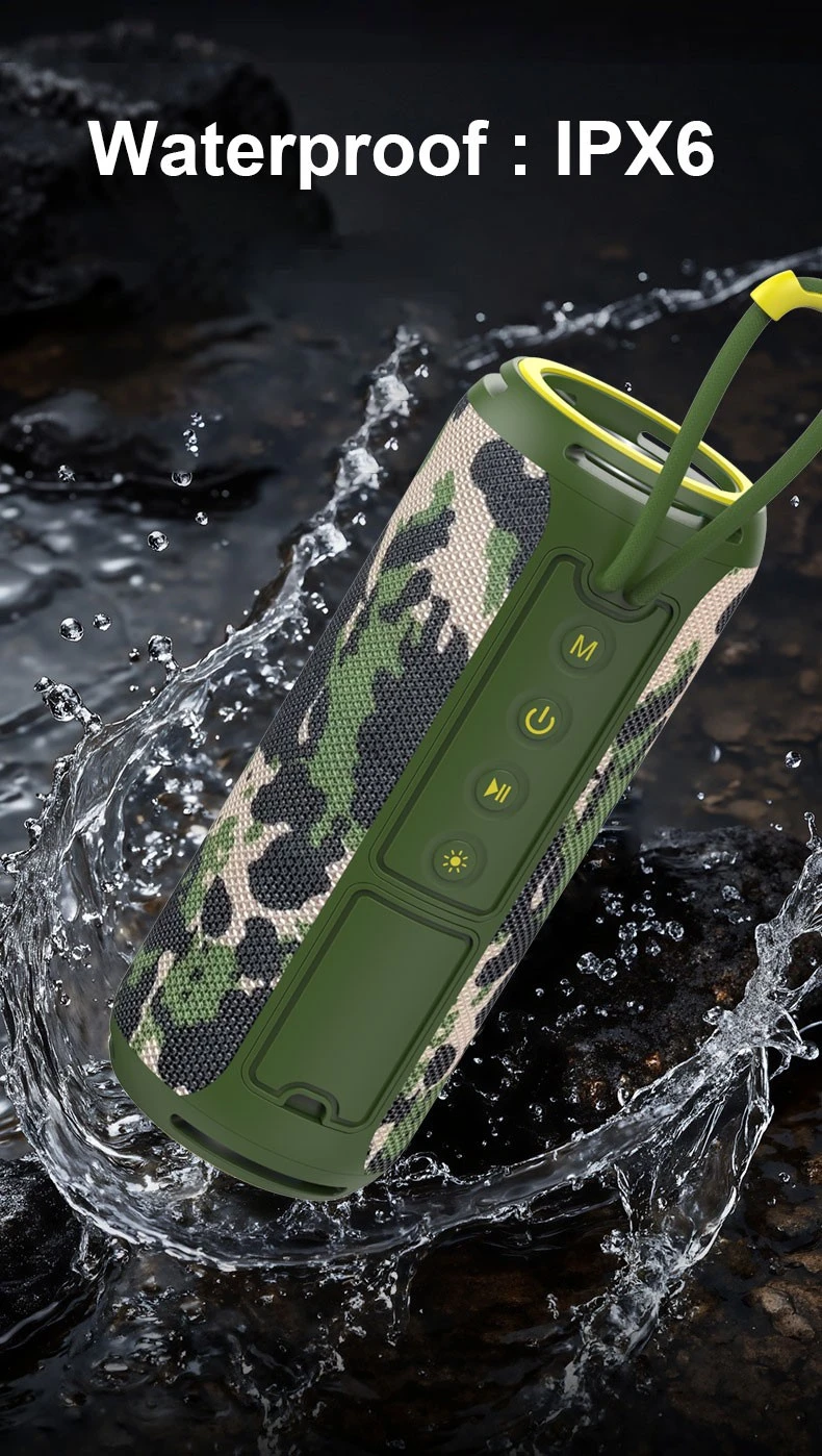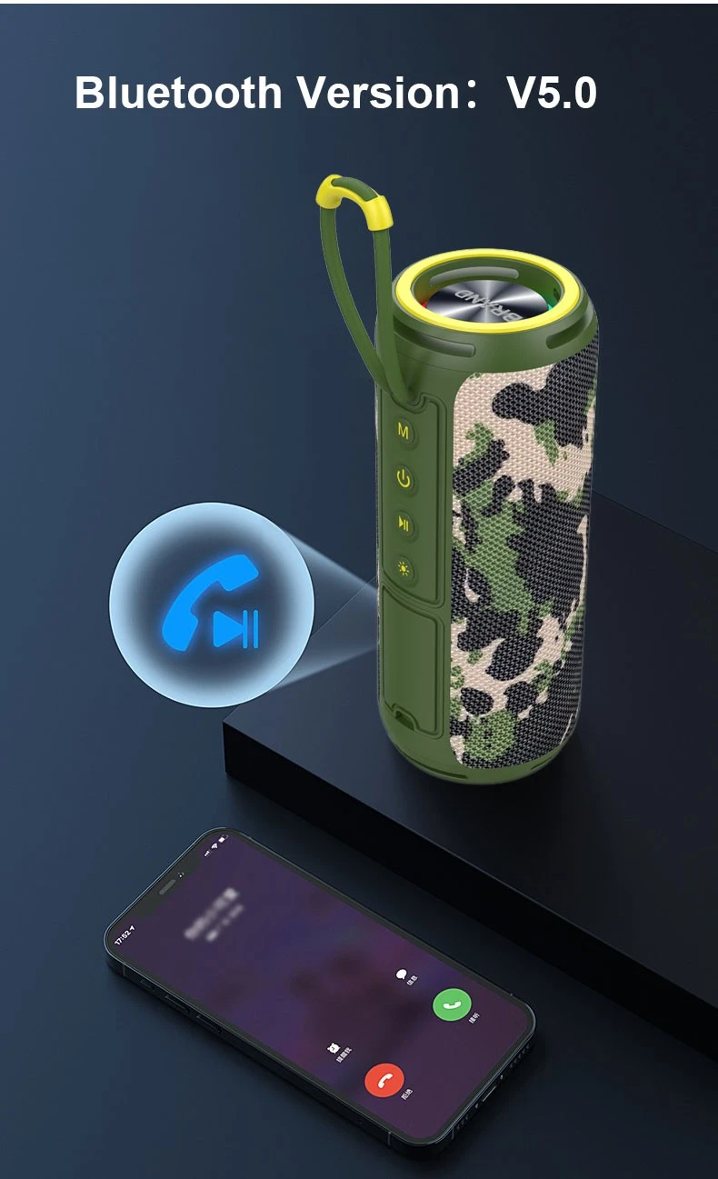 Портативный Bluetooth-динамик заводского производства в Китае: АБС-пластик силикон ткань, Bluetooth 5.0 (10 м) USB/FM/TF/AUX. Звук 2 × 8 Вт (50 Гц–20 кГц), 2000 мАч (4–5 часов воспроизведения, 3 часа зарядки), 8 × 8 × 21,8 см. Идеально подходит для розничных продавцов, которым требуется универсальное и надежное аудиооборудование.
