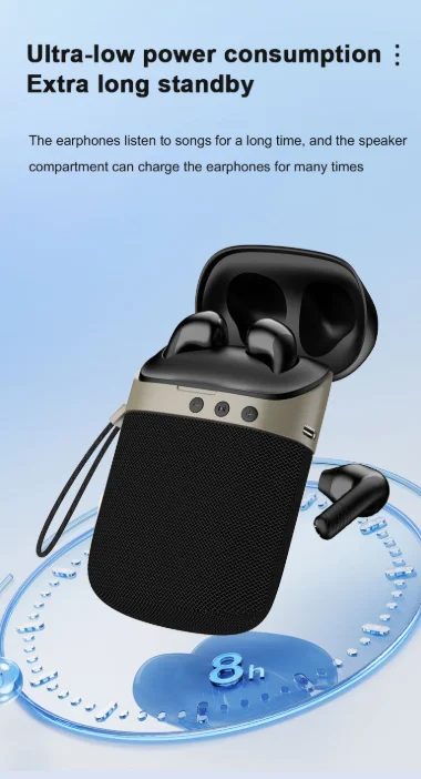- อุปกรณ์สองชิ้นในดีไซน์กะทัดรัดชิ้นเดียว: ด้วยขนาดเพียง 11×6.8×4 ซม. จึงเล็กพอที่จะใส่ในกระเป๋าหรือกระเป๋าเสื้อได้ แต่ดึงหน้าที่สองเท่าได้ ใช้ลำโพง 5W (4Ω, ≥82db อัตราส่วน S/N) สำหรับช่วงเวลาแบบกลุ่ม: เล่นเพลย์ลิสต์ที่ปิกนิก หรือเพิ่มเสียงทีวีสำหรับค่ำคืนแห่งการชมภาพยนตร์กับครอบครัว เปิดหูฟัง TWS (พร้อมลำโพง φ13) ออกมาเพื่อเล่นคนเดียว: ระหว่างเดินทาง ออกกำลังกาย หรือรับสายโดยไม่รบกวนผู้อื่น