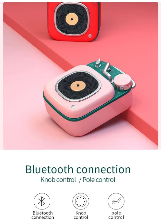 - Öne çıkan retro stil: Siyah, beyaz, pembe, sarı ve yeşil olarak mevcut olan kompakt 69 × 48 × 29mm çerçevesi (bir avuç içi veya çantaya sığacak kadar küçük) modern gadget'lara karşı açılan nostaljik, klasik bir görünüme sahiptir. Sadece bir konuşmacı değil, masalar, komodinler veya sehpalar için bir dekor parçası.