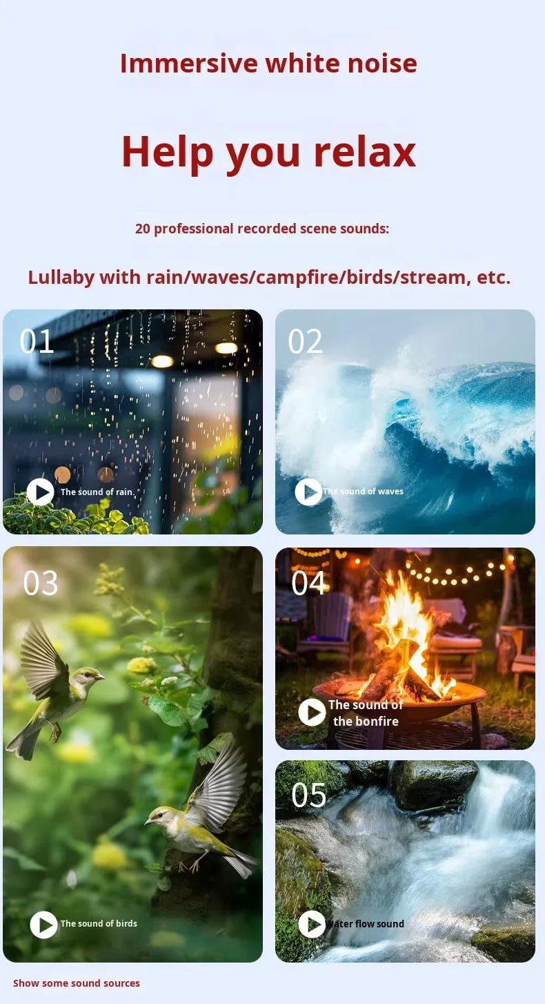 Các chức năng chính: Chế độ ngủ / Chế độ Bluetooth / Hiệu ứng ánh sáng trắng ấm / Ba bánh răng có thể điều chỉnh